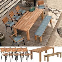 The Barlow Tyrie Titan Range is part of new rustic teak collection that uses teak featuring knots and a varied grain pattern. The 240cm Table will easily accommodate 8 - 10 people, and the larger 300cm 10 - 12 diners, maybe a few more if you seat all the children on one side. Read more...