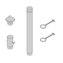 The extension kit comprises of: 1 metre flue, butterfly valve, rain cowl and 2 wall brackets.