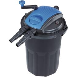 The Bermuda Pressure Filter combines mechanical and biological filtration with an in-built Ultra Violet Clarifier (UVC) for clearer water. The pressurised unit means water can be pumped uphill out of the unit to feed water courses or return to the pond while the filter remains hidden. Sponges can be cleaned at the turn of a handle.