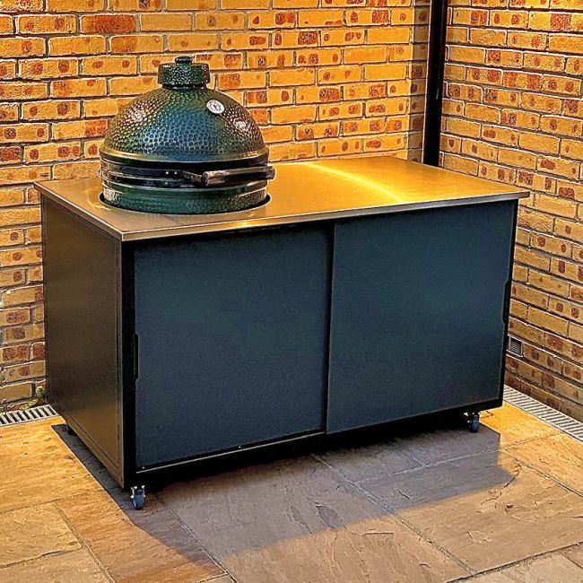 Worktable With Storage - Outdoor Kitchen Island For Big Green Egg Carbon Grey