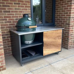 We are delighted to introduce KAMADO SPACE.. Outdoor Kitchen Islands for any Kamado Ceramic Grill | Smoker | Pizza Oven Designed & manufactured with love, these units are seriously engineered with the finest materials. Made for a perfect fit with your chosen or existing Kamado. Simply select the model and we will supply the corresponding stainless steel worktop, with the correct size and shape aperture. Kamado Joe | Primo | Big Green Egg. The hinge cut outs are all accounted for, and you can adjust the height for the perfect working height, and compatibility with rotisserie accessories. There's even an integral ash bin with lid, slide up ventilated access door, bottle opener and shelving & drawers to house all you cooking grates and charcoal. Read more...
