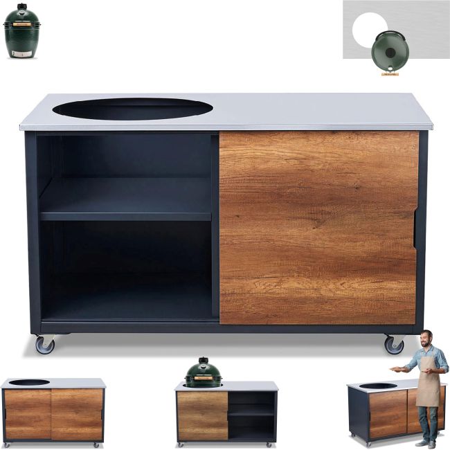 Worktable With Storage - Outdoor Kitchen Island For Big Green Egg Barrique Oak