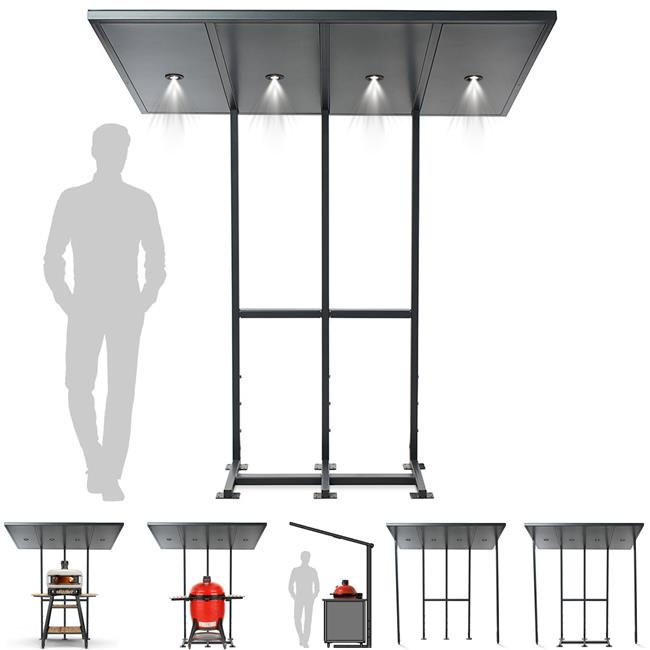 BIG4SPACE Premium quality outdoor BBQ & Pizza Oven Gazebos are made to compliment your Kamado Grill | Pizza Oven | BBQ Table when the weather changes or the evening comes earlier than expected. Manufactured from the highest quality materials with 4 remote controlled LED roof lights, hidden rainwater gutter & integral downpipe.