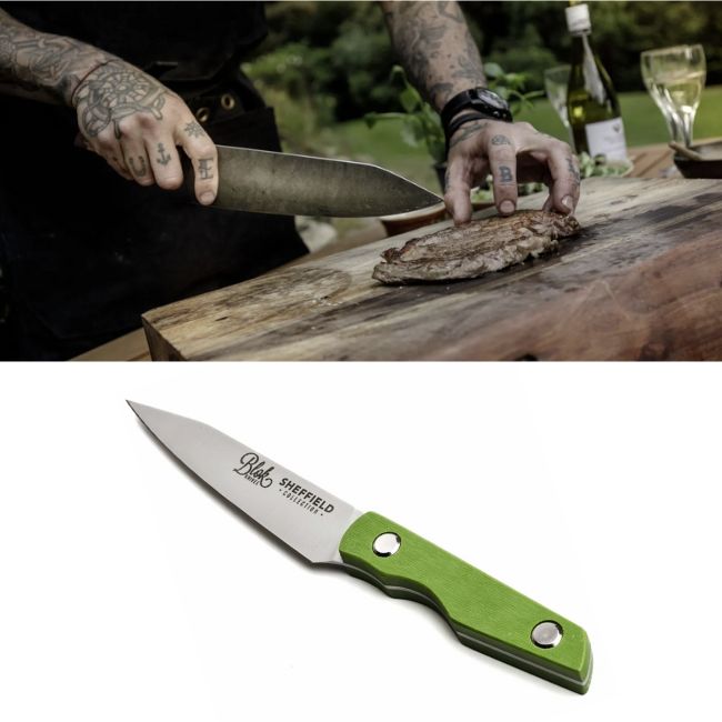 Blok Sheffield High Carbon Stainless Steel - 4" Paring Knife | GREEN Micarta Handle