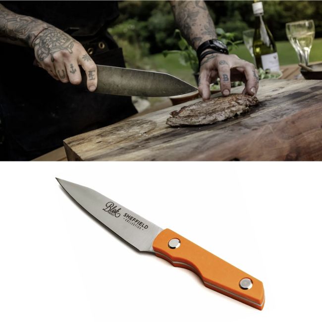 Blok Sheffield High Carbon Stainless Steel - 4" Paring Knife | ORANGE Micarta Handle