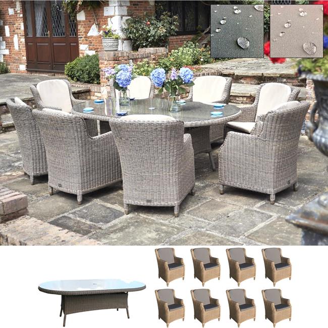 Bridgman All Seasons - 230cm Kensington | Bali Oval Table and 8 Kensington | Brighton Dining Armchairs