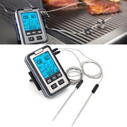 Monitor the whole cookout - reads two temperatures at one time. Two cuts of meat, no problems; a roast and the ambient grill temperature, no sweat. Integrated countdown timer and a wide range of target doneness for each cut of meat.