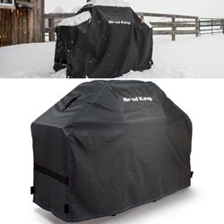 The Broil King premium covers are crafted from water resistant PVC with heavy woven 900D polyester backing. These premium covers feature mesh venting for enhanced air flow and moisture resistance as well as hook and loop closures for a superior fit. Molded rubber handles make the cover easy to remove.
