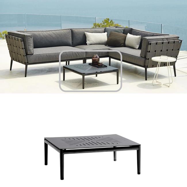 The Conic coffee table gives you an elegant and practical way to connect your Conic lounge modules. The coffee table is easily attached to the different modules, and can be used as a spacing between two modules, or as a nice coffee table. The table has an aluminium frame and is therefore very easy to move around.