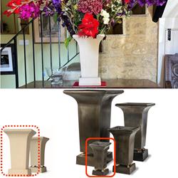 Pure sophistication! The clean elegant lines on these stylish planters make them a beautiful accessory in a hallway or conservatory. They can also be used outside as they are made from strong yet lightweight fibreglass. The larger sizes make them ideal to place as a pair outside a formal front door or entrance. These vases are loved by florists for their light weight and flattering shape, showing flowers off at their best. The cache Pot vases are available with or without feet.