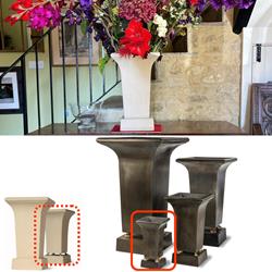 Pure sophistication! The clean elegant lines on these stylish planters make them a beautiful accessory in a hallway or conservatory. They can also be used outside as they are made from strong yet lightweight fibreglass. The larger sizes make them ideal to place as a pair outside a formal front door or entrance. These vases are loved by florists for their light weight and flattering shape, showing flowers off at their best. The cache Pot vases are available with or without feet.