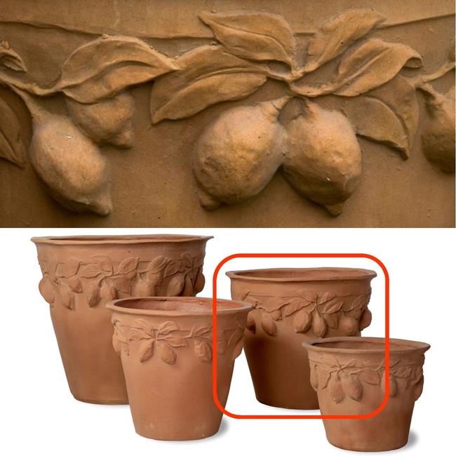 This range of fibreglass terracotta planters are a clever alternative to the 'real' thing. With the lemon design adorning the planter they are particularly suited to mediterranean planting schemes.