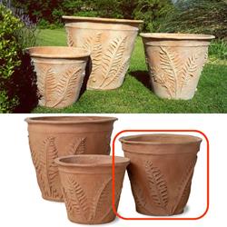 Woodland braken adorns this terracotta pot, with the pattern unfurling upwards from the base.