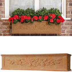 The Oakleaf design on this fibreglass window box is a popular motif that runs through many pieces in the collection. Designed in-house it co-ordinates with pots and troughs all showing a similar oakleaf design.