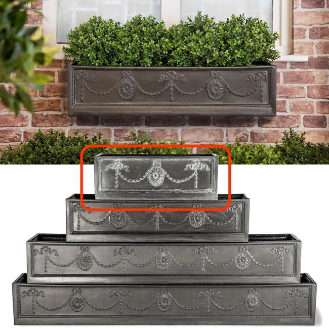 This traditional Adam Window Box is based on the formal architecture of the 18th Century Georgian architect Robert Adam. The delicate design depicted on the planter is definitive of Adam's formal style. There is also a co-ordinating Adam Planter design available.