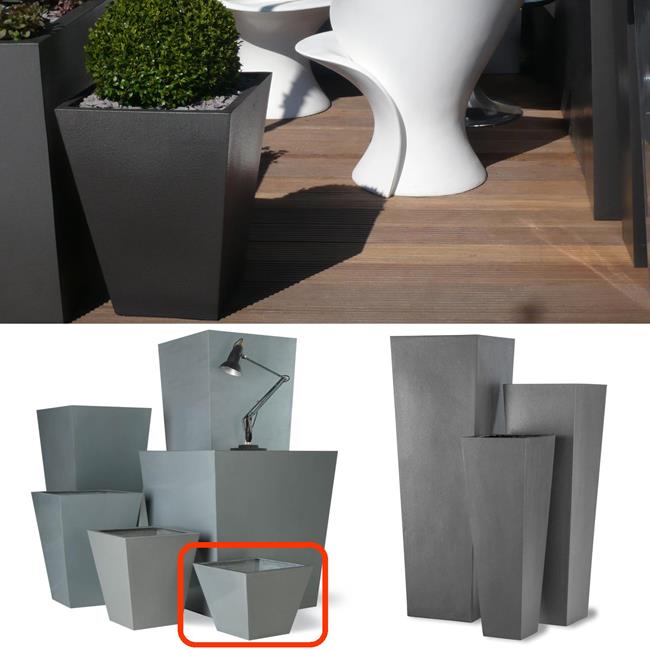 These modern tapered planters are by far and away one of Capital Gardens best selling designs. The classic understated elegance of the design speaks for itself. The streamlined shape makes it a great backdrop for all kinds of foliage and floral colour, simultaneously echoing the clean lines of modern architecture and planting.