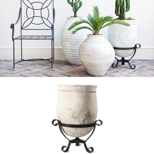 Capital Gardens collection of Mediterranean fibreglass plant pots are distinguishable by their elegant shapes and native textures. These pots make ideal architectural points and accents for interior and exterior designs. They can be grouped together, stood alone or displayed on their sides to embelish any patio, courtyard or garden boarder. Optional metal stands are available.