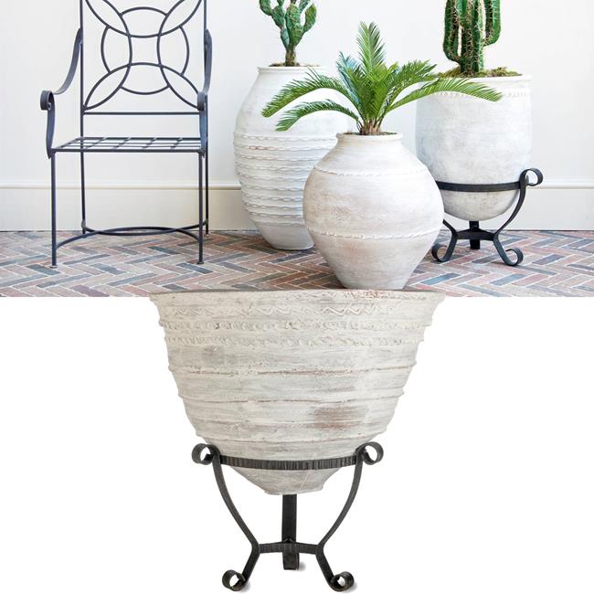 Capital Gardens collection of Mediterranean fibreglass plant pots are distinguishable by their elegant shapes and native textures. These pots make ideal architectural points and accents for interior and exterior designs. They can be grouped together, stood alone or displayed on their sides to embelish any patio, courtyard or garden boarder. Optional metal stands are available.