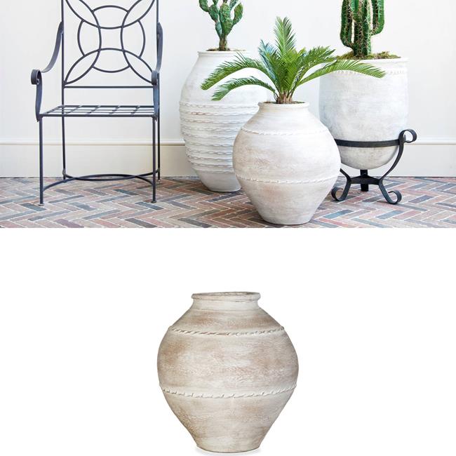 Capital Gardens collection of Mediterranean fibreglass plant pots are distinguishable by their elegant shapes and native textures. These pots make ideal architectural points and accents for interior and exterior designs. They can be grouped together, stood alone or displayed on their sides to embelish any patio, courtyard or garden boarder. Optional metal stands are available.