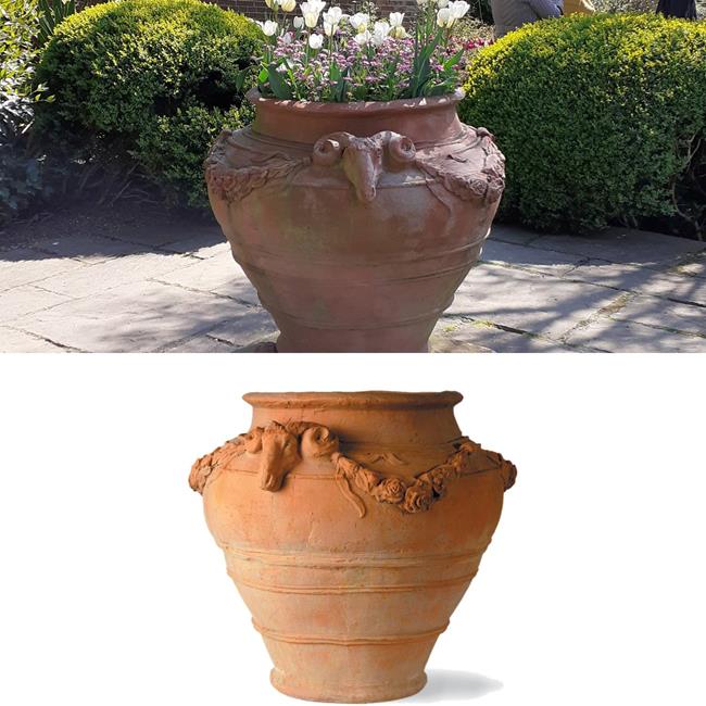 The impressive sculpturing and sheer scale make this planter one of Capital Gardens favourites. The origianl clay design took four men to lift - this lightweight fibreglass version weighs only 15kg! The Sussex Urn is a stylish accompaniment to any garden.