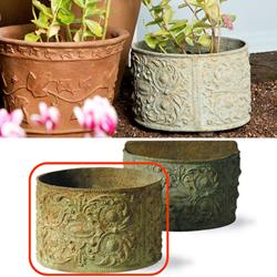 This charming little planter is elaborately decorated and looks pretty planted up with herbs and small flowers. The Half Tonbridge is suitable for hanging on the wall and is lovely with trailing flowers. As it is made from fibreglass it is light, unlike the verdigris metal it replicates.