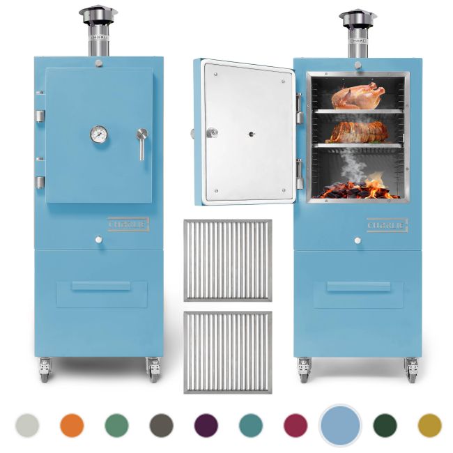 Bring the aromatic aroma of cooking over fire with wood and charcoal to your everyday cuisine. Enjoy delicious, restaurant-quality food at home with the Luxury Charlie Charcoal Outdoor Oven. Simple to operate, Charcoal BBQ barbecue, plancha, smoker, pizza oven, and bread oven combined into one. Manufactured in the UK with love, Charlie Ovens are available in a choice of gorgeous colours - delivered fully assembled, ready to use - Pure cooking pleasure has never been so easy.