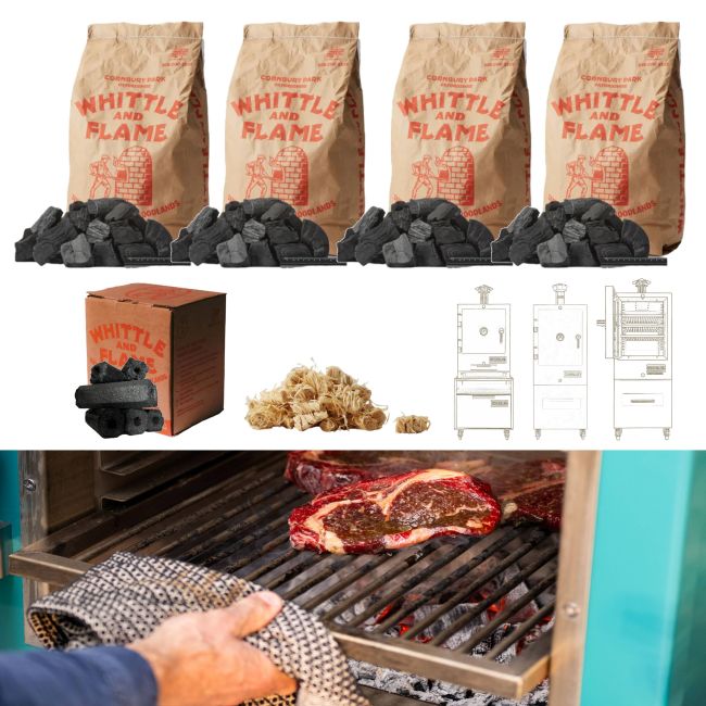 All Whittle and Flame Charcoal is made in Cornbury Park, Oxfordshire, using single-species hardwood.
