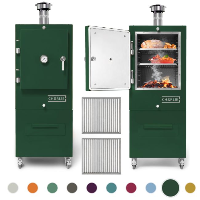 Bring the aromatic aroma of cooking over fire with wood and charcoal to your everyday cuisine. Enjoy delicious, restaurant-quality food at home with the Luxury Charlie Charcoal Outdoor Oven. Simple to operate, Charcoal BBQ barbecue, plancha, smoker, pizza oven, and bread oven combined into one. Manufactured in the UK with love, Charlie Ovens are available in a choice of gorgeous colours - delivered fully assembled, ready to use - Pure cooking pleasure has never been so easy.