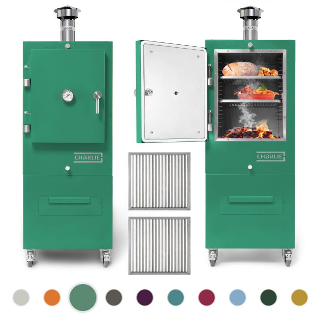 Bring the aromatic aroma of cooking over fire with wood and charcoal to your everyday cuisine. Enjoy delicious, restaurant-quality food at home with the Luxury Charlie Charcoal Outdoor Oven. Simple to operate, Charcoal BBQ barbecue, plancha, smoker, pizza oven, and bread oven combined into one. Manufactured in the UK with love, Charlie Ovens are available in a choice of gorgeous colours - delivered fully assembled, ready to use - Pure cooking pleasure has never been so easy.
