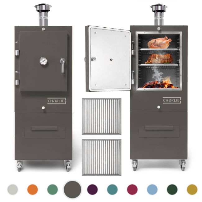 Bring the aromatic aroma of cooking over fire with wood and charcoal to your everyday cuisine. Enjoy delicious, restaurant-quality food at home with the Luxury Charlie Charcoal Outdoor Oven. Simple to operate, Charcoal BBQ barbecue, plancha, smoker, pizza oven, and bread oven combined into one. Manufactured in the UK with love, Charlie Ovens are available in a choice of gorgeous colours - delivered fully assembled, ready to use - Pure cooking pleasure has never been so easy.