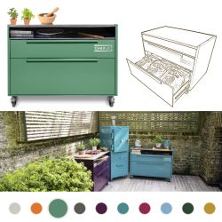 Crafted with exceptional design and quality, the cabinet features a stainless steel countertop that is both durable and easy to clean. It includes two large drawers capable of holding up to 40 kg each, perfect for storing all your outdoor cooking essentials like charcoal, utensils, and cookware. The cabinet is also equipped with a spacious cubby hole shelf for fire-cooking implements and additional storage.