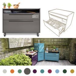 Crafted with exceptional design and quality, the cabinet features a stainless steel countertop that is both durable and easy to clean. It includes two large drawers capable of holding up to 40 kg each, perfect for storing all your outdoor cooking essentials like charcoal, utensils, and cookware. The cabinet is also equipped with a spacious cubby hole shelf for fire-cooking implements and additional storage.