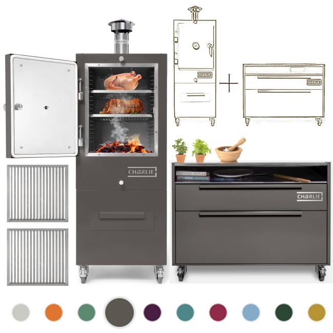 Bring the aromatic aroma of cooking over fire with wood and charcoal to your everyday cuisine. Enjoy delicious, restaurant-quality food at home with the Luxury Charlie Charcoal Outdoor Oven. Simple to operate, Charcoal BBQ barbecue, plancha, smoker, pizza oven, and bread oven combined into one. Manufactured in the UK with love, Charlie Ovens are available in a choice of gorgeous colours - delivered fully assembled, ready to use - Pure cooking pleasure has never been so easy.