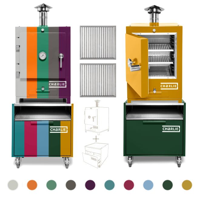 Bring the aromatic aroma of cooking over fire with wood and charcoal to your everyday cuisine. Enjoy delicious, restaurant-quality food at home with the Luxury Charlie Charcoal Outdoor Oven. Simple to operate, Charcoal BBQ barbecue, plancha, smoker, pizza oven, and bread oven combined into one. Manufactured in the UK with love, Charlie Ovens are available in a choice of gorgeous colours - delivered fully assembled, ready to use - Pure cooking pleasure has never been so easy.