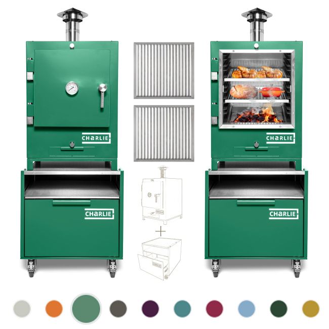 Bring the aromatic aroma of cooking over fire with wood and charcoal to your everyday cuisine. Enjoy delicious, restaurant-quality food at home with the Luxury Charlie Charcoal Outdoor Oven. Simple to operate, Charcoal BBQ barbecue, plancha, smoker, pizza oven, and bread oven combined into one. Manufactured in the UK with love, Charlie Ovens are available in a choice of gorgeous colours - delivered fully assembled, ready to use - Pure cooking pleasure has never been so easy.