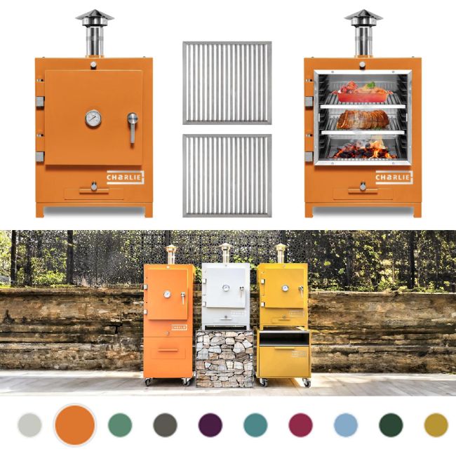 Bring the aromatic aroma of cooking over fire with wood and charcoal to your everyday cuisine. Enjoy delicious, restaurant-quality food at home with the Luxury Charlie Charcoal Outdoor Oven. Simple to operate, Charcoal BBQ barbecue, plancha, smoker, pizza oven, and bread oven combined into one. Manufactured in the UK with love, Charlie Ovens are available in a choice of gorgeous colours - delivered fully assembled, ready to use - Pure cooking pleasure has never been so easy.