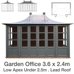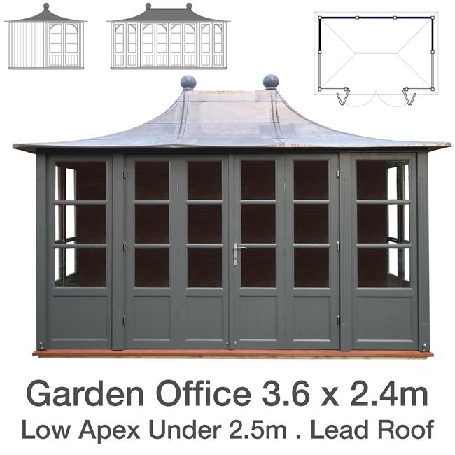![]() 3.6 x 2.4m Low Roof Height (2.49m) Double Glazed With Magnificent Lead Roof Double Doors To Front Fixed Glazed Windows To Sides Availability: Sorry, This Range Is Currently Unavailable Product Code: OFFICE3624LOW |