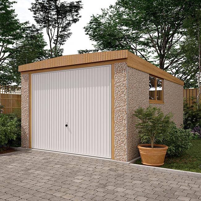 The walls are concrete panels, machine vibrated and re-enforced with steel mats to give maximum strength. The exterior finish is hard wearing and maintenance free Canterbury Spa Stone. All panel joints are sealed with natural colour mastic. Framed & fully retractable up & over door/s included - or options to upgrade to different styles or electric roller shutter door/s.