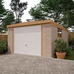 The walls are concrete panels, machine vibrated and re-enforced with steel mats to give maximum strength. The exterior finish is hard wearing and maintenance free Canterbury Spa Stone. All panel joints are sealed with natural colour mastic. Framed & fully retractable up & over door/s included - or options to upgrade to different styles or electric roller shutter door/s.