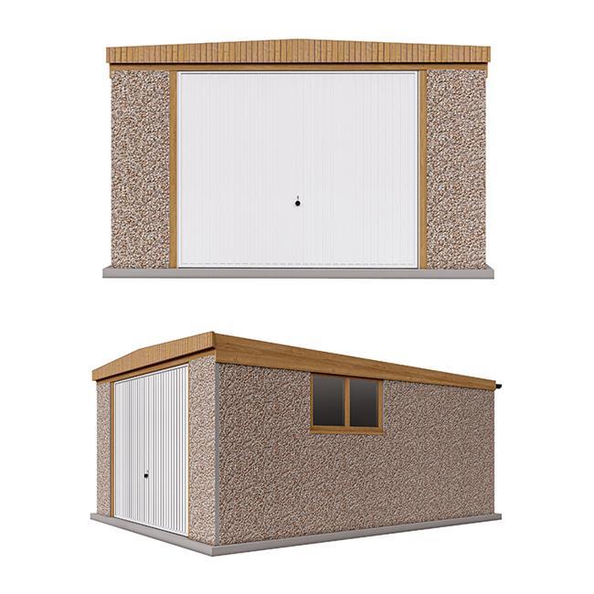 The walls are concrete panels, machine vibrated and re-enforced with steel mats to give maximum strength. The exterior finish is hard wearing and maintenance free Canterbury Spa Stone. All panel joints are sealed with natural colour mastic. Framed & fully retractable up & over door/s included - or options to upgrade to different styles or electric roller shutter door/s.