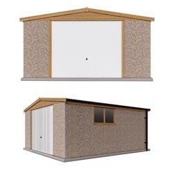 The walls are concrete panels, machine vibrated and re-enforced with steel mats to give maximum strength. The exterior finish is hard wearing and maintenance free Canterbury Spa Stone. All panel joints are sealed with natural colour mastic. Framed & fully retractable up & over door/s included - or options to upgrade to different styles or electric roller shutter door/s.