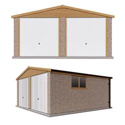 The walls are concrete panels, machine vibrated and re-enforced with steel mats to give maximum strength. The exterior finish is hard wearing and maintenance free Canterbury Spa Stone. All panel joints are sealed with natural colour mastic. Framed & fully retractable up & over door/s included - or options to upgrade to different styles or electric roller shutter door/s.