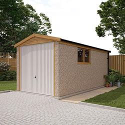 The walls are concrete panels, machine vibrated and re-enforced with steel mats to give maximum strength. The exterior finish is hard wearing and maintenance free Canterbury Spa Stone. All panel joints are sealed with natural colour mastic. Framed & fully retractable up & over door/s included - or options to upgrade to different styles or electric roller shutter door/s.