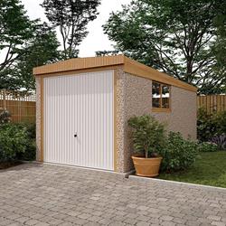 The walls are concrete panels, machine vibrated and re-enforced with steel mats to give maximum strength. The exterior finish is hard wearing and maintenance free Canterbury Spa Stone. All panel joints are sealed with natural colour mastic. Framed & fully retractable up & over door/s included - or options to upgrade to different styles or electric roller shutter door/s.