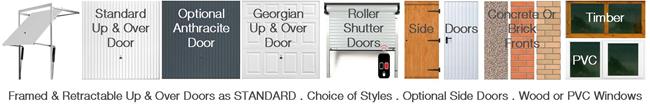 Prices include 7ft steel up and over door. See optional extras for door upgrades.