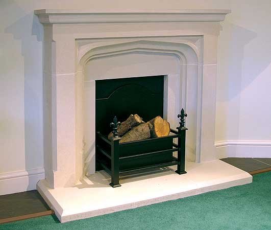 Illustrated Manor House Chimney Piece HF505 with Slips, Hearth and optional Fire Basket WF200. A version of the popular Manor Chimney Piece designed for a narrower chimney-breast.