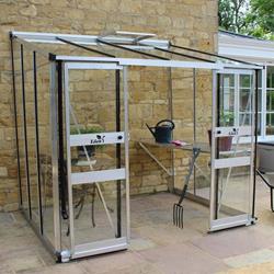 The Eden Broadway brings the award winning Zero Threshold door system to the lean-to sector. A lean-to is a great choice for over-wintering plants because the sun will warm the wall during the day and that wall will be released into the greenhouse at night, ensuring an ideal growing environment. The Broadway features wide, lockable, double doors for perfect access together with high eaves giving plenty of room for plants and people. Wide gutters capture the most rainwater possible and are easy to keep clean. The frame features a strong integral base, speeding up the construction process.