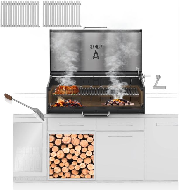 The ASADO PRO.3.2 from Flamery is our large, built-in Asado BBQ Grill - designed to integrate into your outdoor kitchen for a sophisticated and permanent setup.