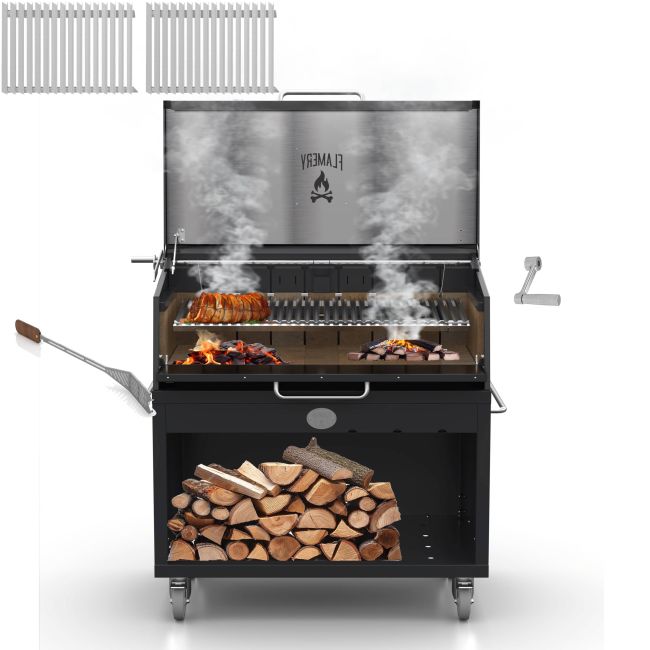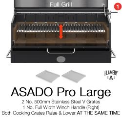 The ASADO PRO.2.2, Large Asado Grill BBQ on Trolley, is the ultimate wood-fired BBQ. Featuring an expansive cooking area of up to 100cm x 41cm, this grill is ideal for preparing multiple dishes at the same time, making it perfect for large gatherings or elaborate meals.