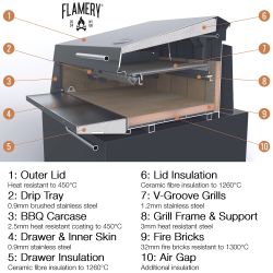 The trolley has a traditional BBQ style with sturdy locking castors and handles, allowing you to move your grill to the best spot in your outdoor space. The base doubles as wood storage and includes hanging hooks for your BBQ tools, ensuring you have everything you need within arm’s reach.